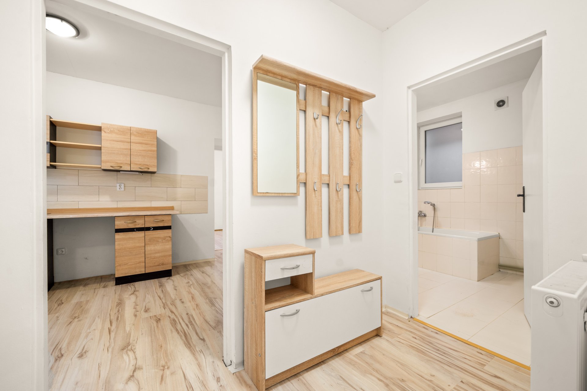Dispozice bytu nabízí dostatek prostoru pro celou rodinu. Uvítá vás prostorný obývací pokoj. Na něj navazuje kuchyň s kuchyňskou linkou. K dispozici jsou také dvě ložnice, které poskytují klidné místo pro odpočinek. Komfort bydlení doplňuje koupelna s vanou a praktická předsíň. O vytápění se stará elektrokotel, zatímco v horkých dnech oceníte klimatizaci. Plastová okna s trojskly zajišťují skvělou zvukovou a tepelnou izolaci. Všechny potřebné rozvody (voda, vytápění, elektro, kanalizace) jsou již provedeny.